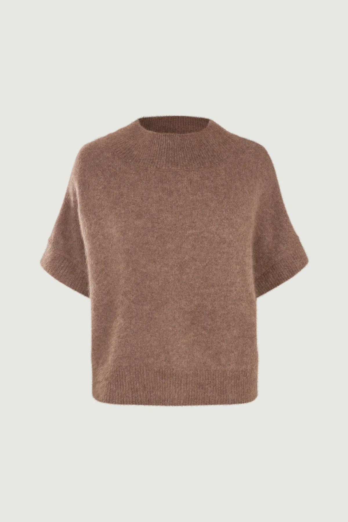 Doanna Sweater fra Six Ámes i farven Acorn Melanger er en luksuriøs og tidløs strik fremstillet i 100% vaskebjørnsuld (raccoon wool). Den bløde og varme kvalitet gør sweateren behagelig at bære hele dagen, samtidig med at den bevarer sin form og elegance sæson efter sæson.