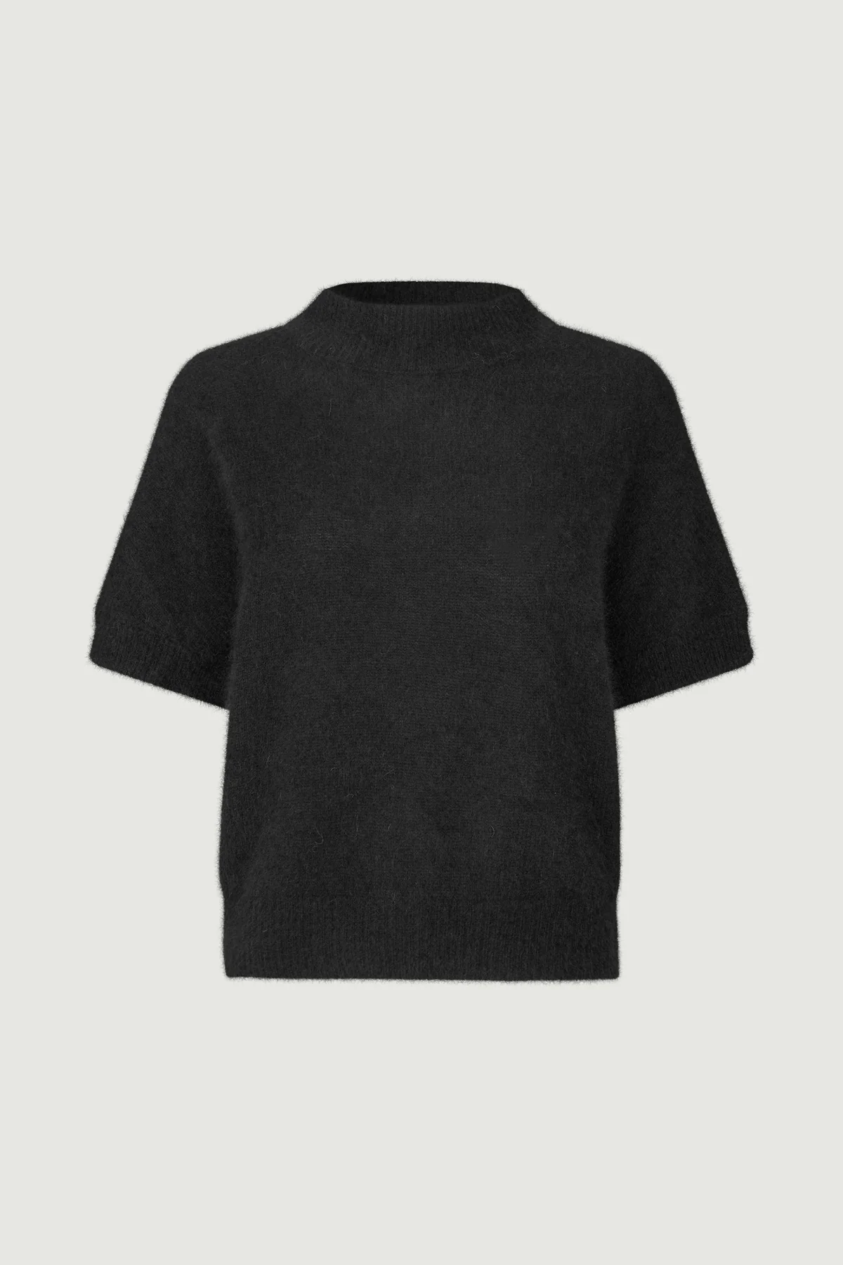 Doanna Sweater fra Six Ámes i farven Black er en luksuriøs og tidløs strik fremstillet i 100% vaskebjørnsuld (raccoon wool). Den bløde og varme kvalitet gør sweateren behagelig at bære hele dagen, samtidig med at den bevarer sin form og elegance sæson efter sæson.