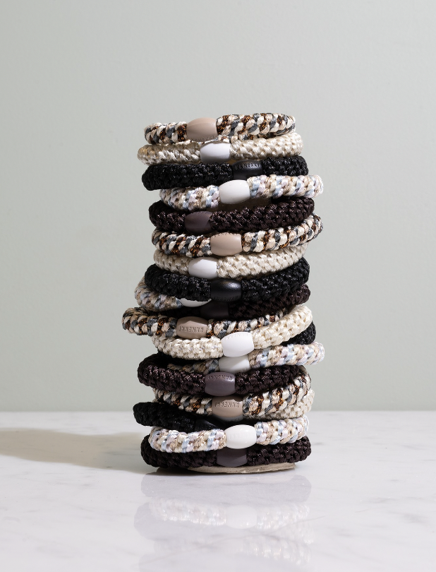Elastikken er fremstillet med en tætvævet struktur omkring en elastisk kerne, hvilket gør den både fleksibel og stærk. Den sidder stabilt hele dagen, men glider nemt ud igen, så håret forbliver skånsomt behandlet. Den kan også bæres som et diskret armbånd, hvilket gør den både praktisk og stilfuld.