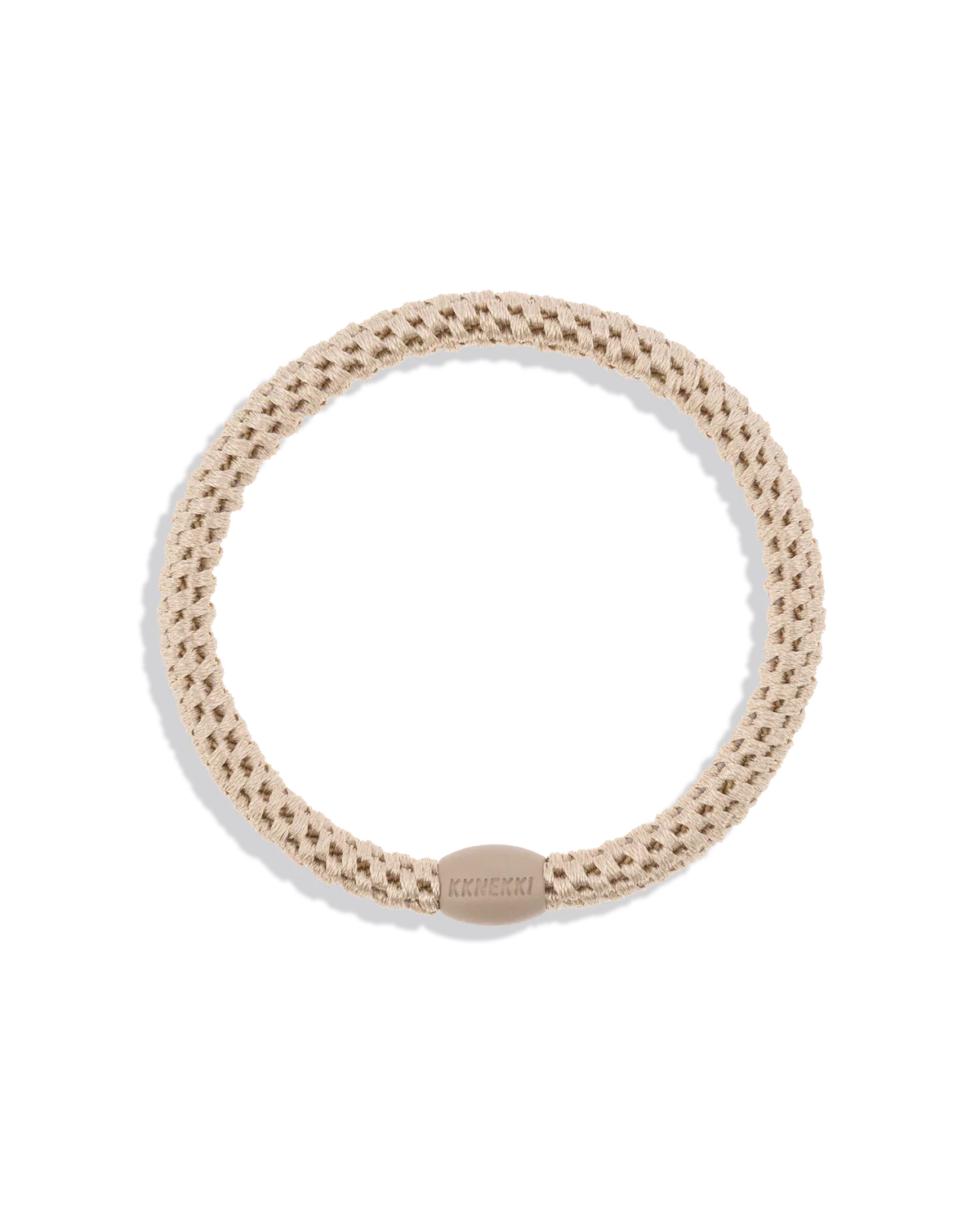 KKNEKKI Slim er en smal og elegant hårelastik, der giver et sikkert hold uden at skade håret. Den vævede kvalitet gør elastikken slidstærk og behagelig at bruge, samtidig med at den efterlader færre mærker i håret end traditionelle elastikker.