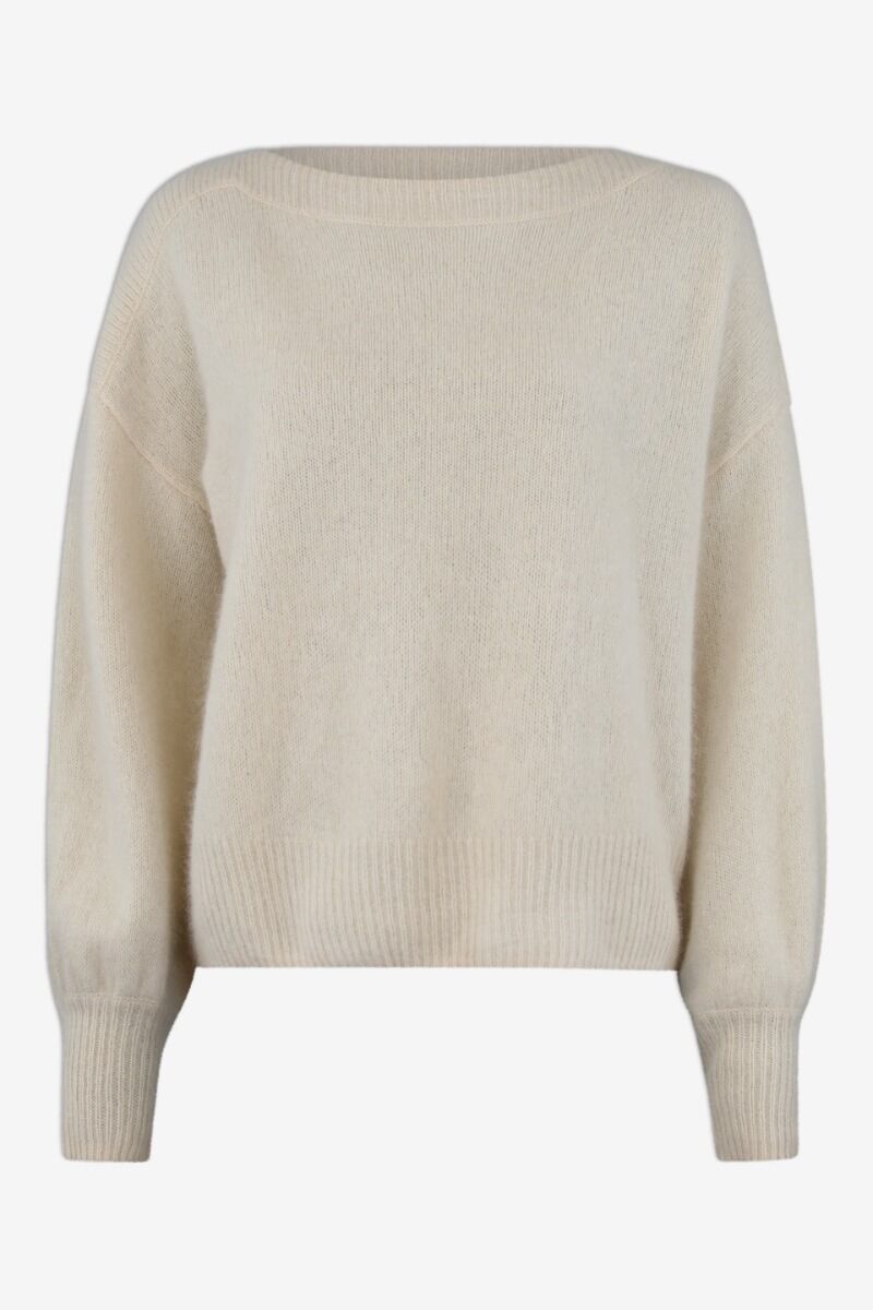 Malou Sweater fra Six Ámes i farven Off White Melange er en luksuriøs og tidløs strik fremstillet i 100% vaskebjørnsuld (raccoon wool). Den eksklusive kvalitet er utrolig blød, let og varm, hvilket gør sweateren behagelig at bære hele dagen – både til hverdag og mere elegante looks.