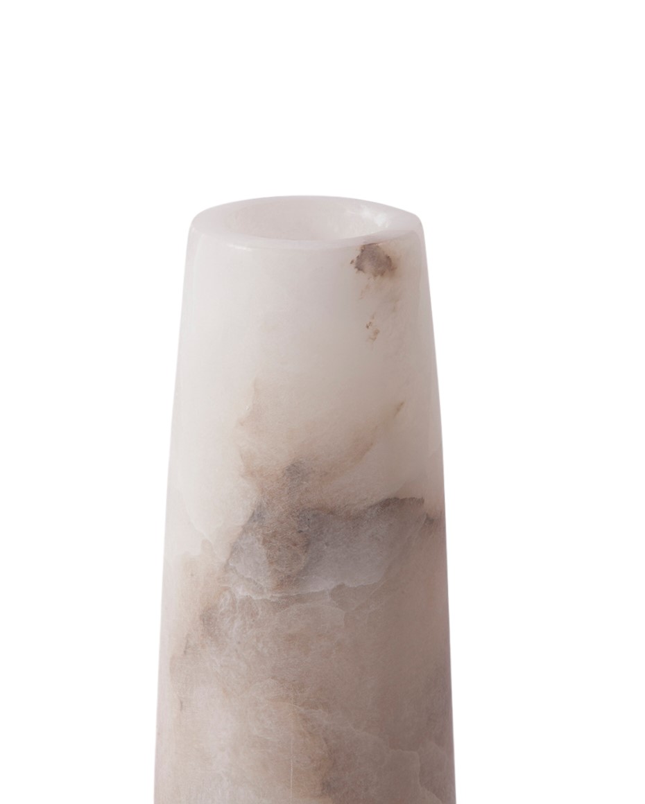 Oliva Alabast vaser er perfekte til spiseborde, konsoller, hylder eller gulvplaceringer, hvor de fungerer som både dekorative og stilfulde statement-objekter. Den naturlige varme i alabastfinishen tilfører elegance og karakter til enhver indretning.
